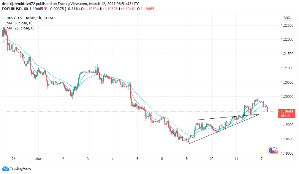Вчера я отметил возможную тенденцию, которая грозила евродоллару продолжить снижение, но цена пробила фигуру вверх и это подтвердило восходящий тренд по данной валютной паре.