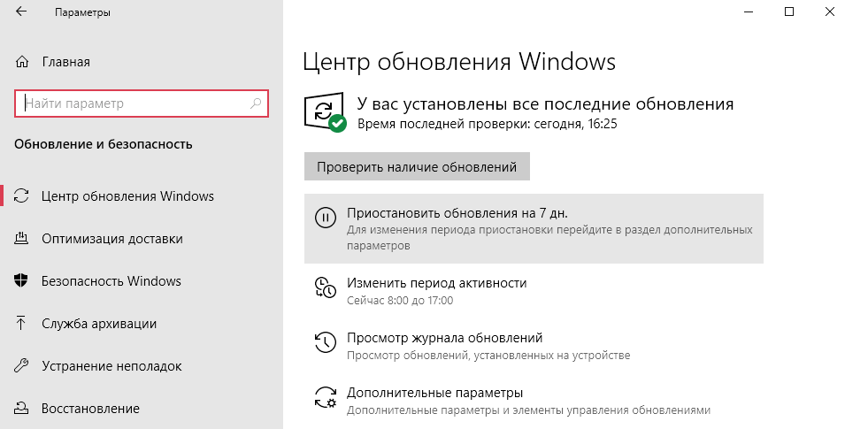 Перейдите в Параметры > Обновления и безопасность > Центр обновления Windows и нажмите