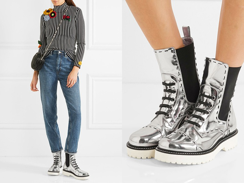 - Грубые ботинки. Этот вид обуви, по-прежнему в моде. Носят ботинки, как с джинсами, так и с платьями.