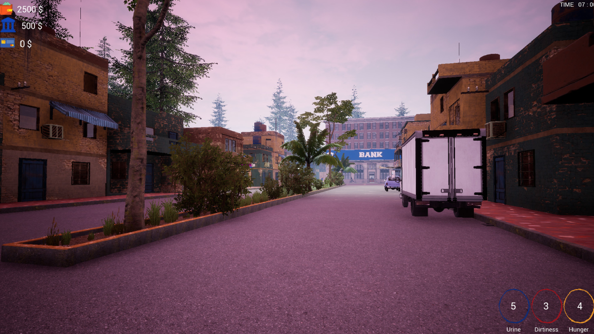 В самом начале игры мы оказываемся в своём доме. Здесь много свободного места, но уютом как-то не отдаёт. Мебели минимум, стены голые, полное одиночество. Но это легко изменить. В дальнейшем, зарабатывая на своём бизнесе, мы сможем приобрести мебель, ноутбук, ванну, унитаз, расставить всё как хочется. В этом симуляторе многое напоминает реальную жизнь. У нас есть естественные потребности и аспекты выживания: поесть, помыться, сходить в туалет. Но это лишь дополнение. Всё основное происходит в городе.