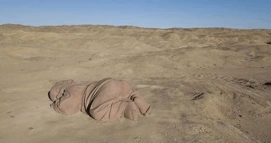 Находится она в пустыне Гоби в округе Гуачжоу, город Цзюцюань, провинция Ганьсу. Автор Донг Шубинг отсканировал настоящего младенца, затем выточил скульптуру по кирпичикам из красного песчаника на 3д-принтере. В итоге получилась скульптура длиной 9 метров и высотой до 4 метров. Название ей дали тоже масштабное - "Сын земли".