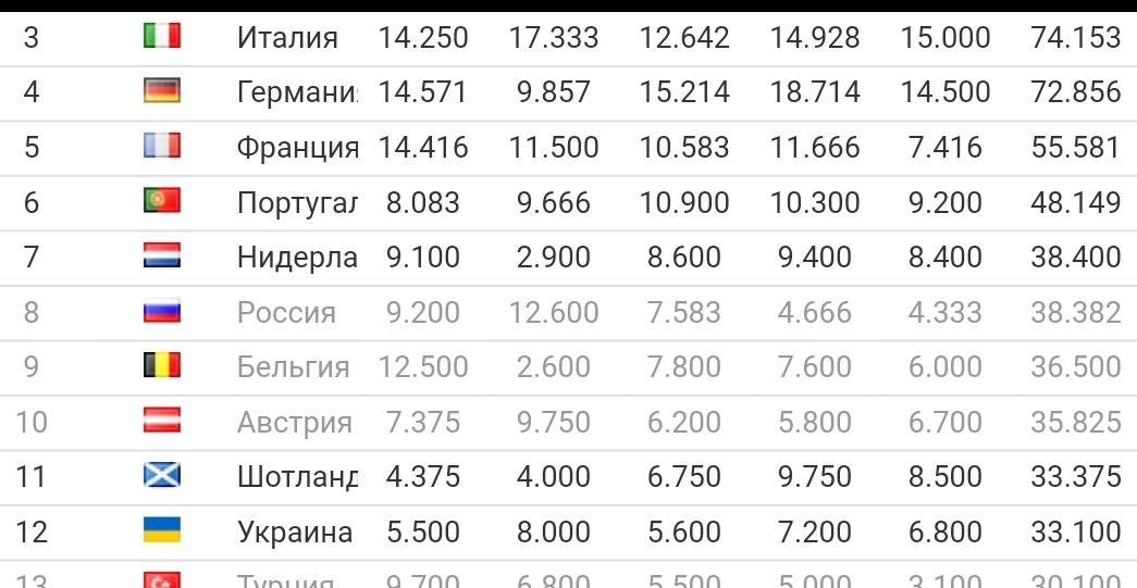 Совсем недавно нас обошла Португалия. Теперь их уже не догнать, разница составляет практически 10 очков, а мы в последнее годы набираем по 4 всего.