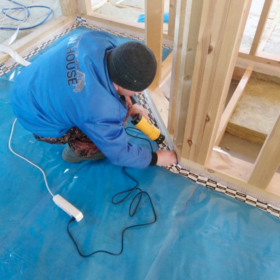 Утепление, монтаж пароизоляции, проклейка всех стыков пленки.