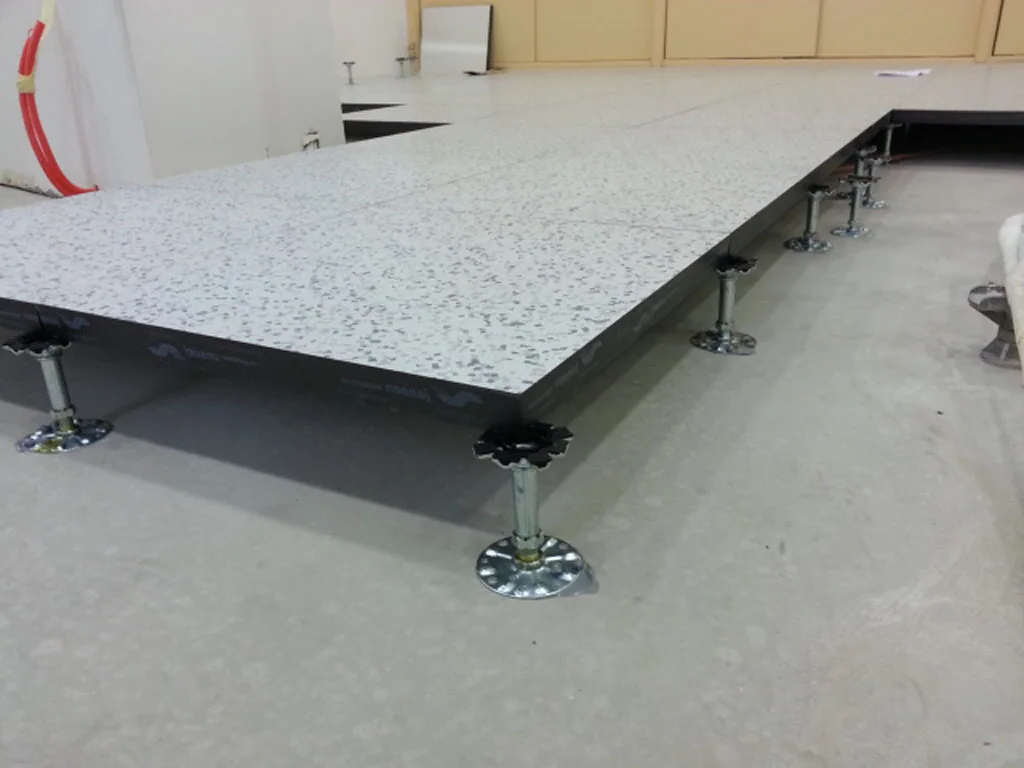 Что для этого необходимо? На основание пола монтируются стальные стойки, имеющие регулировку по высоте, на них устанавливаются слоистые панели из самых разных материалов. Многослойные по структуре панели фальшпола обеспечивают его износостойкость и устойчивость, а стойки, с регулировкой по высоте сглаживают неровности основания пола, который не нужно предварительно выравнивать. В результате, в короткий срок получается совершенно ровный пол, скрывающий компьютерные провода, а также служащий воздуховодом помещения для всевозможных инженерных коммуникаций.
