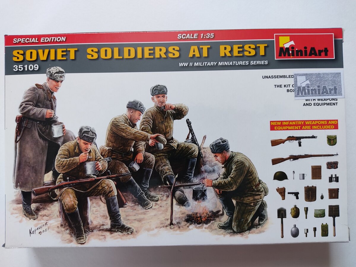 Доброго вам времени дня и ночи, представляю вам набор миниатюр "Советские солдаты на отдыхе" от производителя MiniArt