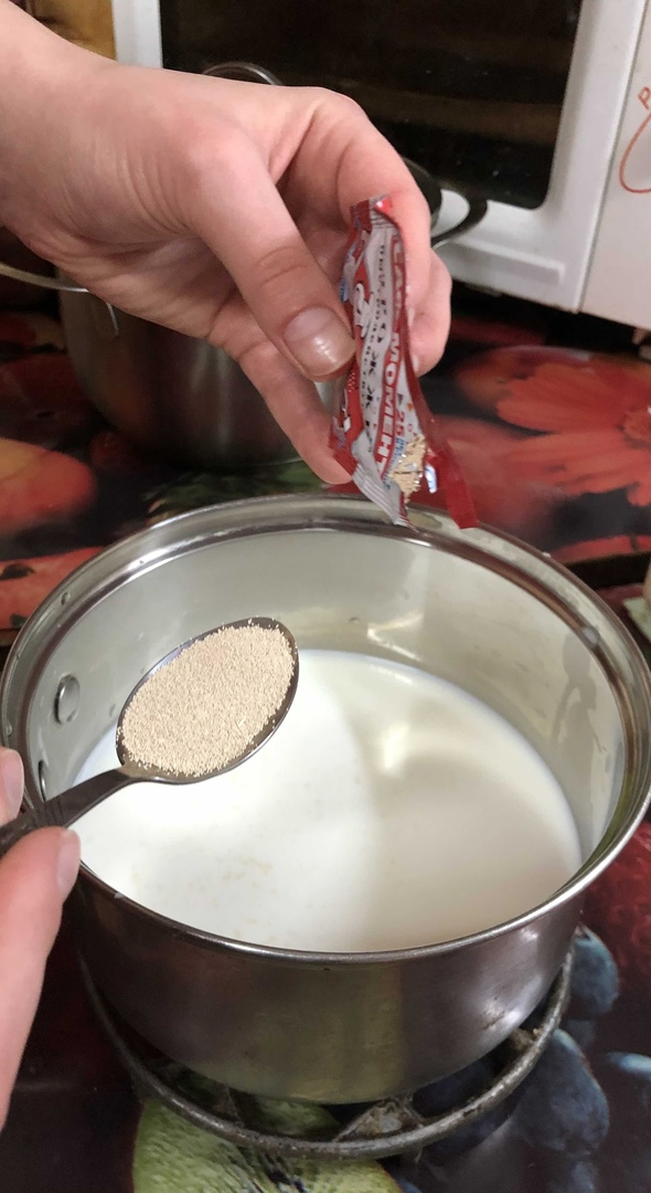 Для приготовления понадобятся мука, яйца, фарш, молоко, варенье, дрожжи, сахар, соль. Все это смешиваем(взбиваем),
