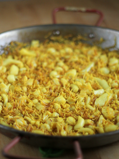 Я использовал лапшу с тонкими волосами, чтобы приготовить этот рецепт, но, конечно, вы можете использовать изогнутую лапшу фидеуа, толстую лапшу или даже приготовить по тому же рецепту с рисом Бомба, адаптируя время для каждого ингредиента . Результат будет одинаково вкусным.