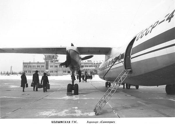 В аэропорт Синегорья 13 марта 1980 года прибыл Ан-12 (командир — заслуженный пилот РСФСР Н. Ф. Прокопенко), доставив 9-тонную пожарную машину для Колымагэсстроя. Этот рейс подтвердил возможность аэропорта принимать самолеты Ан-12 и Ил-18