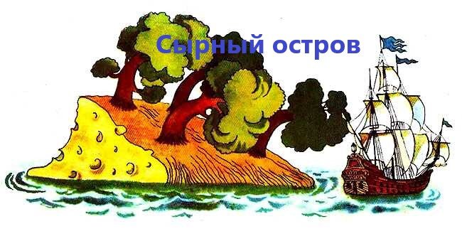 Остров, к которому пристал наш корабль, был сделан из отличного голландского сыра! Да, да, не смейтесь, я рассказываю вам истинную правду: вместо глины у нас под ногами был сыр. Мудрено ли, что жители этого острова питались почти исключительно сыром! Но сыра этого не становилось меньше, так как за ночь его вырастало ровно столько, сколько было съедено в течение дня. Весь остров был покрыт виноградниками, но виноград там особенный: сожмёшь его в кулаке из него вместо сока течёт молоко.