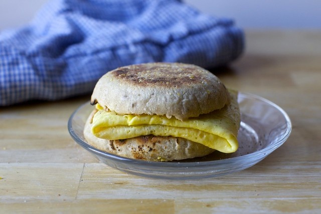 Это делает один маленький сэндвич с яйцом, который мне нужен, Но вы можете использовать тот же метод с двумя яйцами и немного более длительным временем приготовления.
