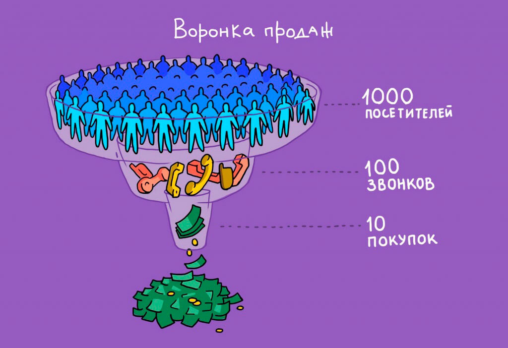 Говоря о прямых продажах, костяк воронки состоит из таких этапов как: