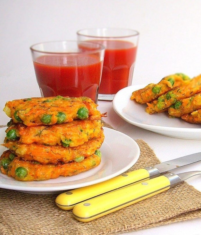 *на 100 г 93.34 ккал Б/Ж/У 4.17/1.62/17.21*Ингредиенты:Тыква — 500г (натереть на терке)Зеленый горошек (замороженный) — 150г (залить кипятком на 2 мин. промыть холодной водой, чтобы не потерял цвет)Яйца — 2штМолоко или кефир — 100млЛук репч — 1шт (мелконарезанный)Манка — 2ст.л.Мука — 100г.Приготовление:Все ингредиенты перемешать и оставить на 20 мин. Печь на медленном огне на антипригарной сковороде
