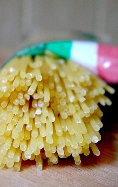 2. Спагетти отварить до готовности в большом количестве подсоленной воды. Оставить на время в дуршлаге, чтоб стекла вода. Тем временем нарезать