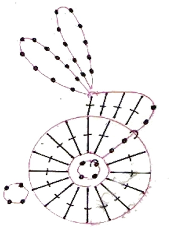 Иногда, нам нужна какая-то деталь для декора наших изделий. Для таких случаев отлично подойдет вязаная аппликация. Я предлагаю связать зайчика за 15 минут. Очень быстро и красиво! Вот схема зайчика: А для тех, кто не умеет читать схему, вяжите вместе со мной. Делаем 4 возд. петли, замыкаем их в круг. 1 ряд: 3 возд.петли, 7 столбиков с накидом. 4возд.петли (хвостик) замыкаем в петлю последнего столбика. 8 столбиков с накидом, соедин. столбик. 2 ряд: 3 возд. петли, 4 столбика с накидом. (голова) 10 возд.петель (ушко) замыкаем в предыдущем столбике, 10 возд. Петель (второе ушко) замыкаем туда же. Зайчик готов! Отрезаем нить и пришиваем бусину (глаз). Вот что получилось у меня. В зависимости от толщины пряжи – изменяется и размер зайчика. Надеюсь вам понравился этот зайчик. Еще из рубрики быстрый результат можно посмотреть здесь: Подписывайтесь на канал и мы будем вязать еще много интересных изделий.