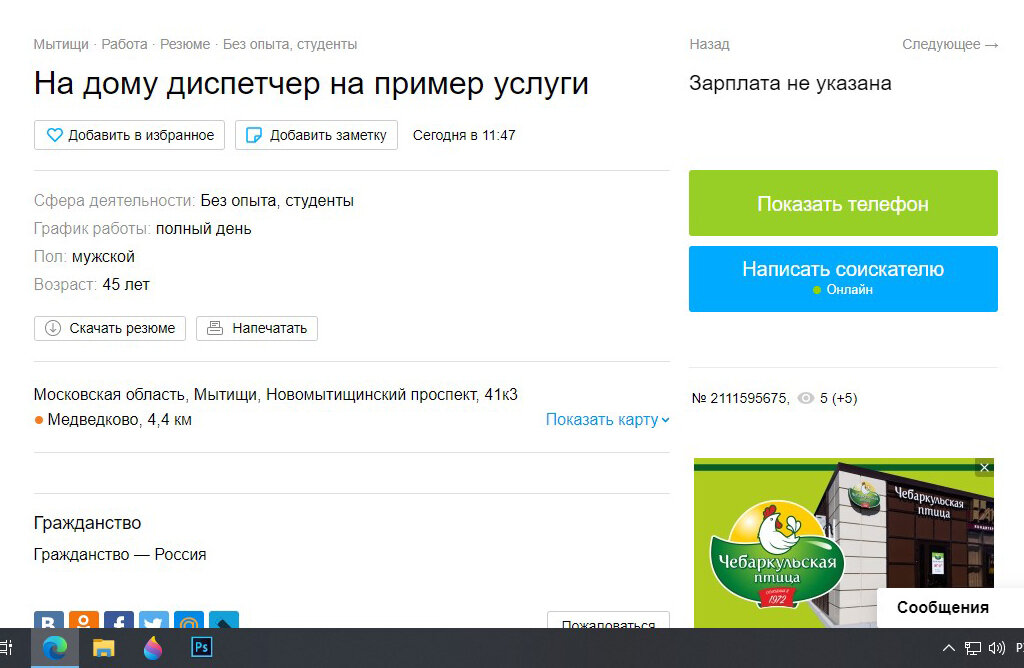 6. В этом объявлении привлекает внимание не текст, а фотография соискателя. У работодателей судя по всему он будет на расхват.