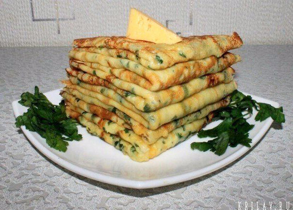 По желанию можно смазать каждый сырный блинчик сливочным маслом.