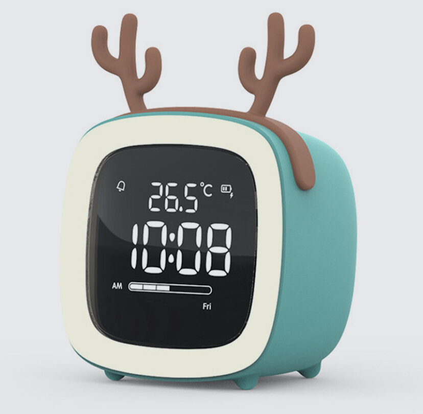 Ночник с часами, будильником и термометром (зеленый) Олень есть и с другими животными.