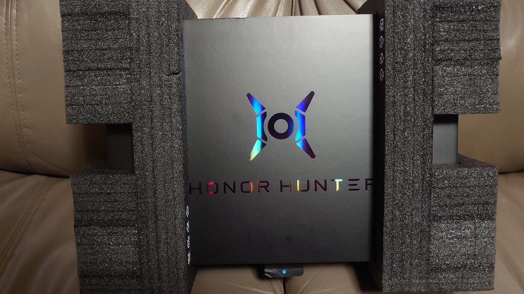 Honor Hunter V700 поставляется сразу в двух коробках. Снаружи — обычная картонная, внутри же черный кейс с откидной крышкой. Ноутбук находится внутри этого кейса. Там же спрятали зарядное устройство и адаптер.