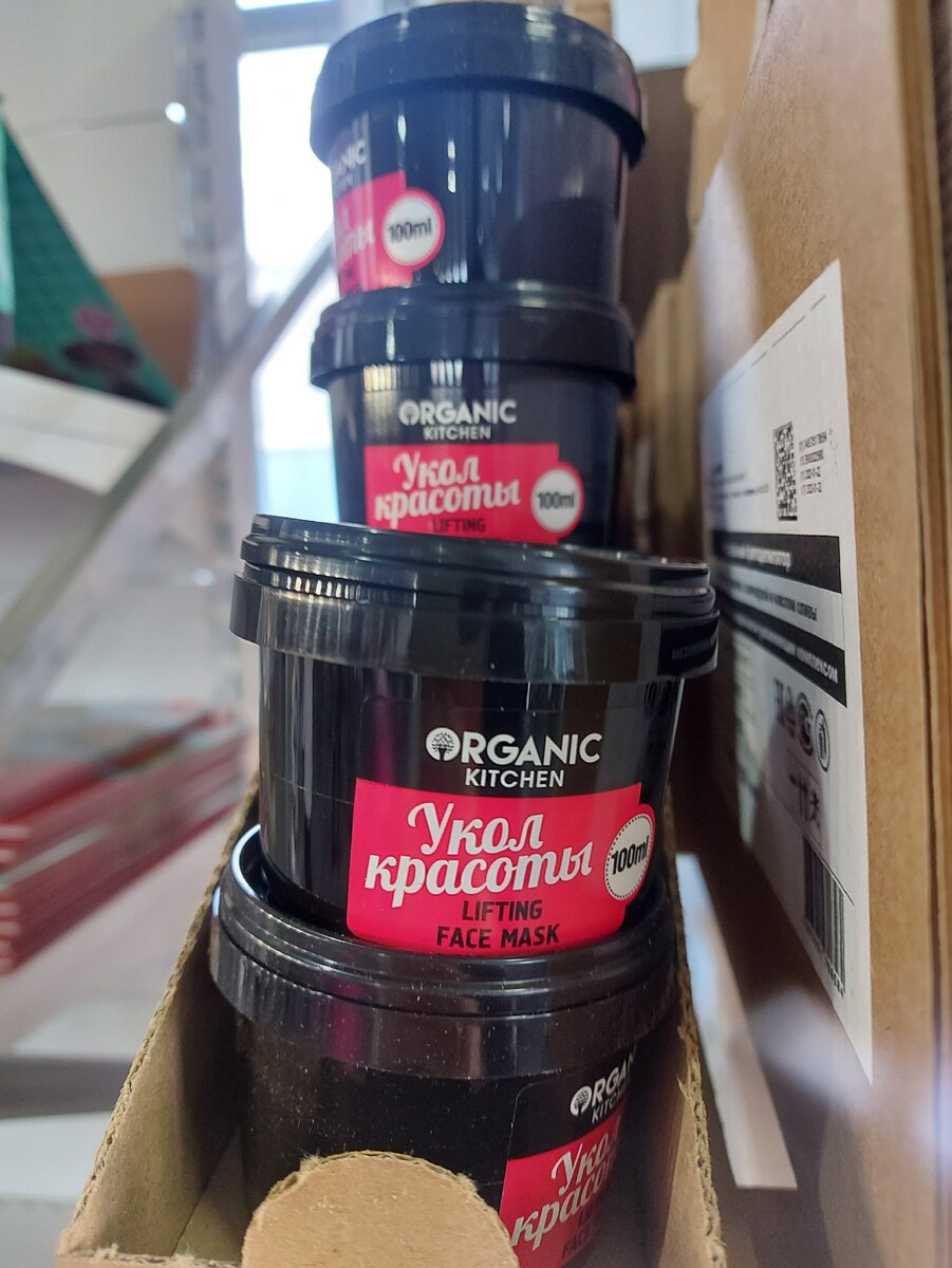 - Наконец появился Organic Kitchen. Не было его здесь около двух лет. Марка, фишка которой в полностью натуральном составе без отдушек и парабенов. На сей раз здесь представлена лифтинг-маска для лица, в виде густого геля. За баночку, объёмом в 100 мл. вы отдадите всего 50 руб. 90 коп., в то время как в других магазинах ценник будет варьироваться от 150 до 250 руб.