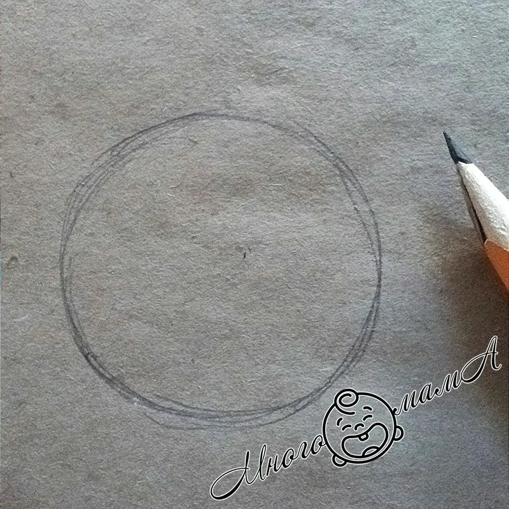 Это основа для домика. Для того чтобы изобразить спираль ракушки, делим круг пополам горизонтальной линией. Спираль будет смещена слегка влево от центра, поэтому начинайте рисовать с самой большой окружности, постепенно уменьшая ее в левую сторону.