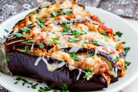 Баклажаны, запеченные в духовке с помидорами, чесноком и сыром