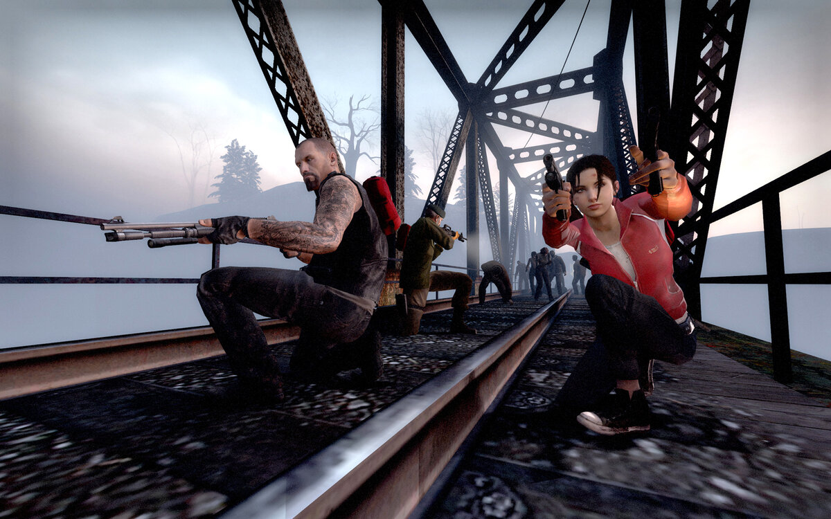 Довольно популярный, хоть и старенький шутер, можно проходить в кооперативе. В команде может присутствовать до 4 живых игроков, а недостающие заменяются ботами. В Left 4 Dead важна слаженность команды и взаимопомощь, иначе противостоять банде зараженных будет сложно.