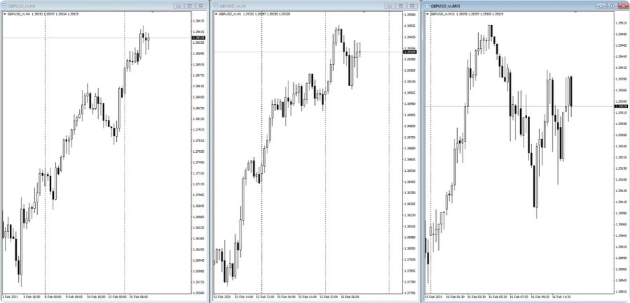 Продолжим, для классической торговли нам потребуется использовать три графика, ими будут H4, H1 и М15. Конечно же можно будет работать и с другими тайм-фреймами, но об этом немного позже.