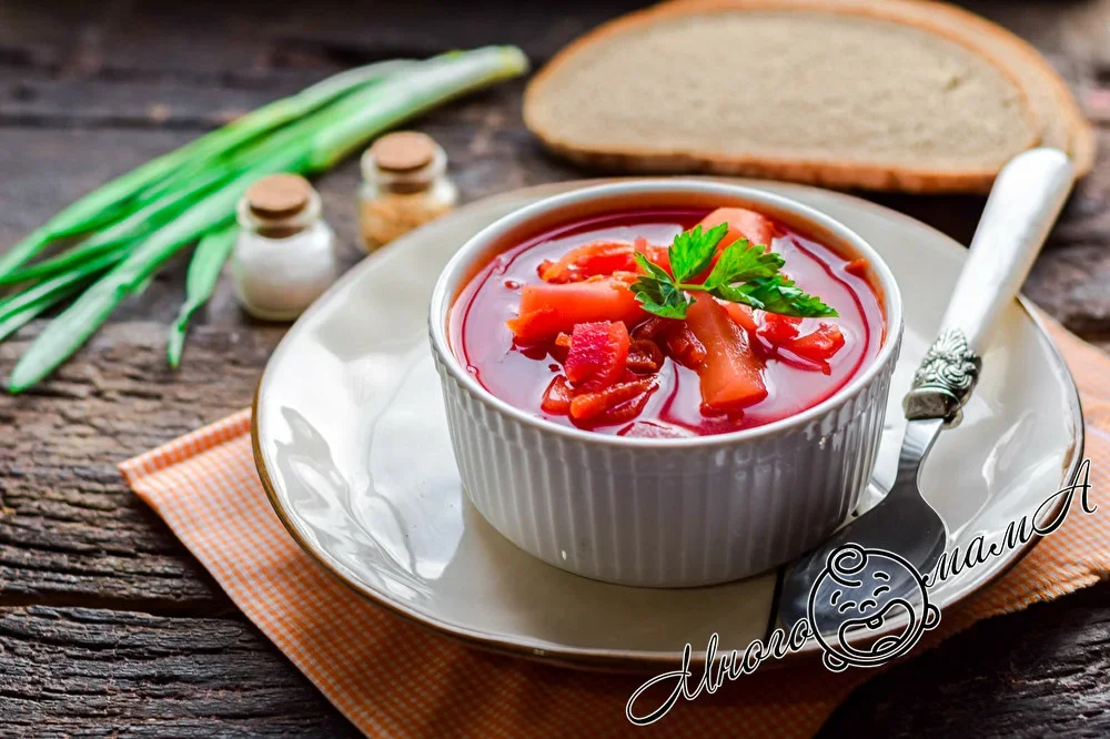 Через 15 минут свекольник готов. Разливаем его по тарелкам и подаем к столу.