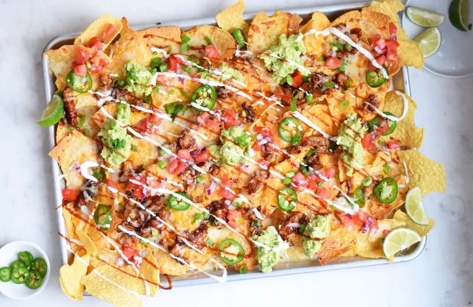 Сбрызните противень кулинарным спреем или застелите его пергаментной бумагой или алюминиевой фольгой. Выложите чипсы тортильи ровным слоем. Чипы могут немного перекрываться, но для максимального покрытия сыра у каждого чипа должно быть свое пространство.