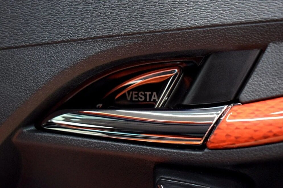 Это хромированные накладки под салонные ручки открывания дверей с надписью VESTA. Выглядят неплохо, сделаны качественно, в комплекте идет скотч 3М, с помощью которого легко установить данную деталь.