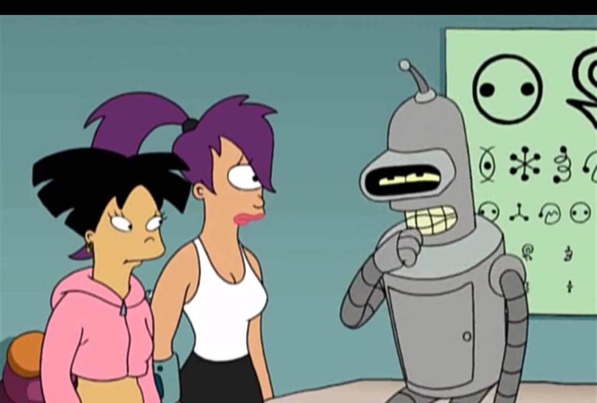 Серия «Фрай и фабрика слерма», 2-ой сезон. Бендер «заболел», потому что проглотил часы Эми. Но перед этим Эми ему советует (в переводе):