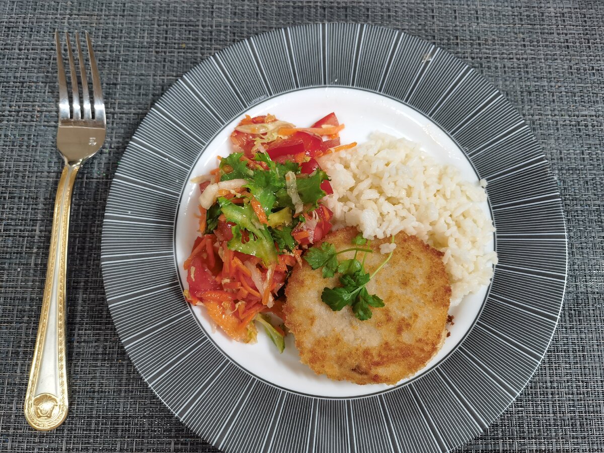 Рыбу в Великий Пост есть нельзя. Только в Благовещение и Вербное воскресение. Поэтому порция мужа с медальонами из трески, а моя ткакая же, но без рыбки...
