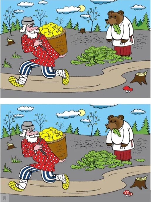 1. Тут вот такая картинка. Сразу вспоминаются детские сказки. Здесь скрыто 10 отличий.
