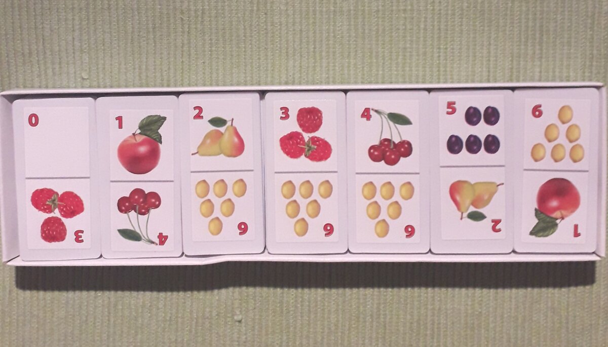 Осваиваем счет и лексику по теме «Фрукты и ягоды» на немецком языке. Это домино интересно тем, что с его помощью отрабатывается умение считать в пределах десяти. К тому же, на костяшках изображены фрукты и ягоды в определенном количестве. Эта игра оптимально подходит для детей, упражняющихся в образовании множественного числа существительных на занятиях немецким языком.
