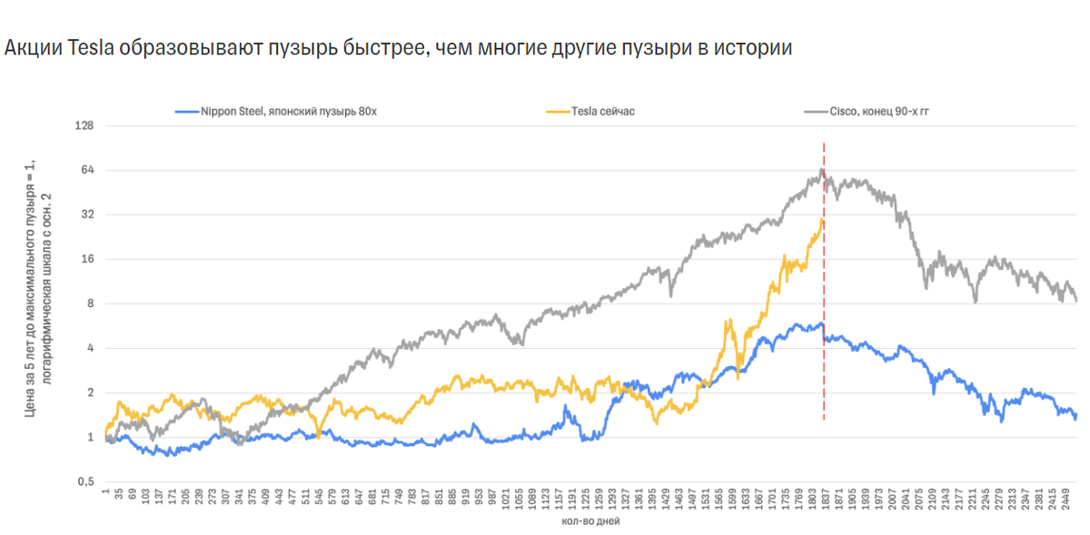 Все сравнивают бешеный рост акций компаний Tesla с пузырем доткомов.
