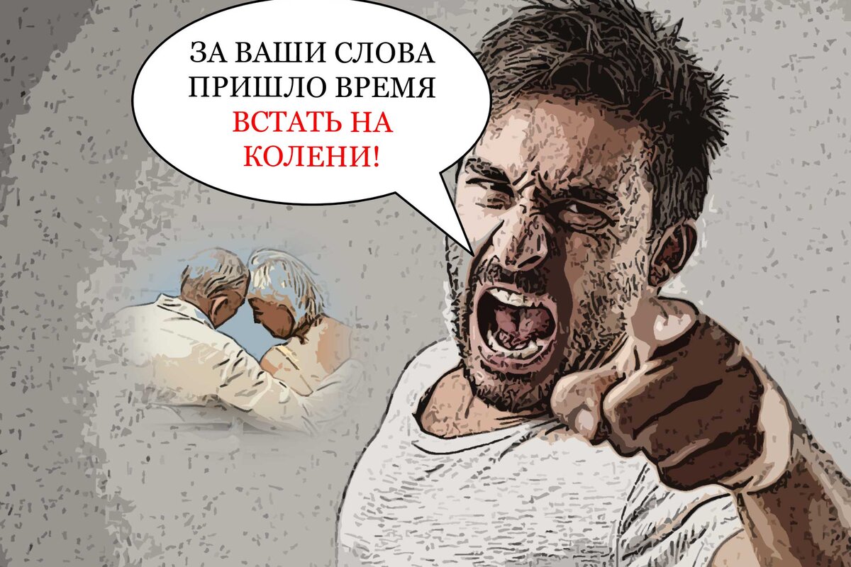 Мать начала опускаться на колено, а отец взорвался и рванул ее на себя с такой силой, что чуть не упала. Орал, махал руками, пытался меня схватить за воротник, но такой роскоши ему не перепало. Мать тоже "очнулась" и пошла в атаку. Оскорбили опять и мою жену, и даже ребенка.