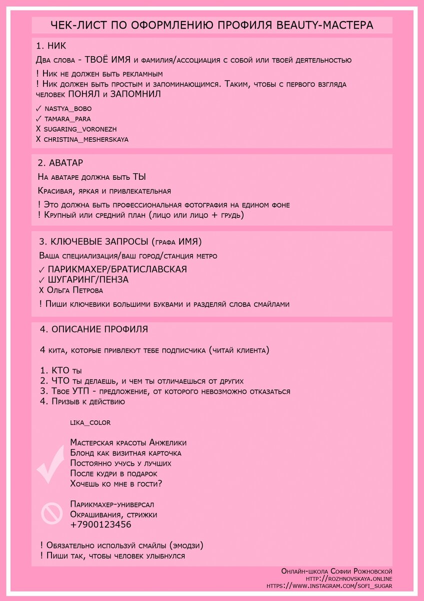 Чек лист по оформлению профиля Beauty-мастера