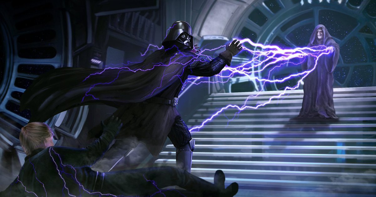 Все мы помним финал Возвращение Джедая, где Люку удается вновь зажечь искру света в своем отце. Дарт Вейдер, видя страдания своего сына, спасает его и сбрасывает Императора Палпатина в бездну.