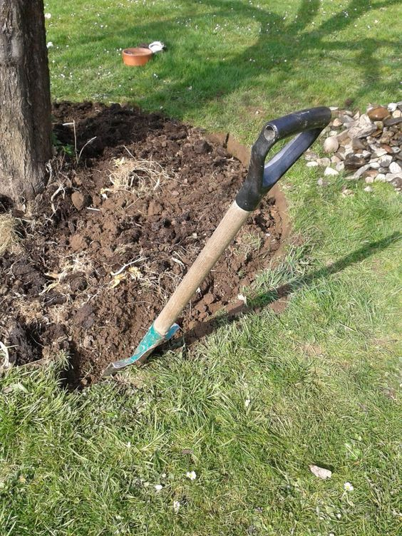 Важно ! При перекопке почвы вокруг дерева лопату помещайте ребром (по ходу роста корней, а не поперек их хода роста), только так риск травмирования корневой системы дерева будет сведен к минимуму.
