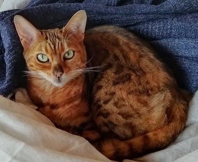 Знакомьтесь, это Лёпа- бенгальская кошка, гуляющая ещё год назад сама по себе и никому не доверявшая: