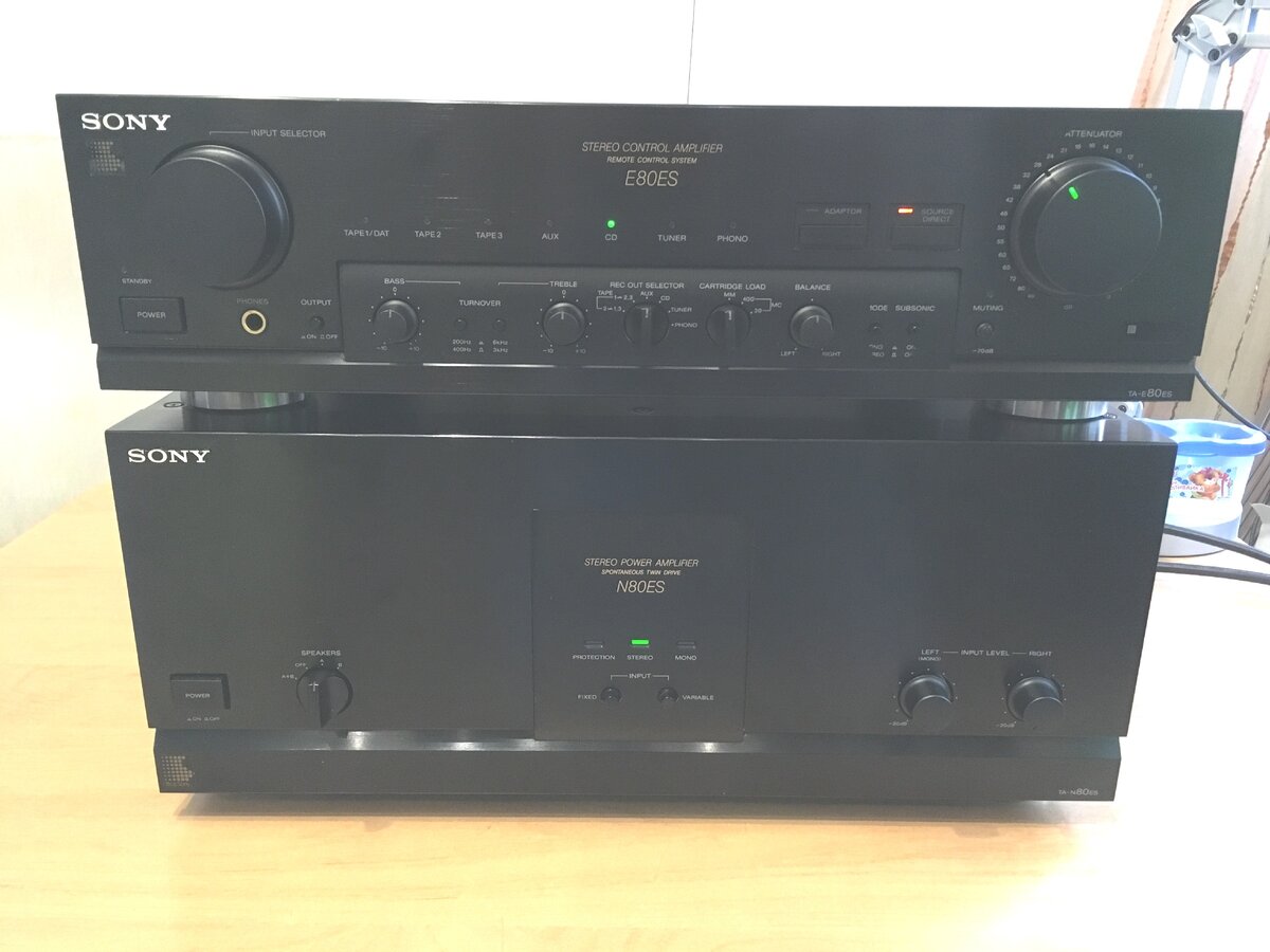 Начну с усилителя мощности. Sony TA-N80ES - мощный оконечный усилитель серии ES, которая была выделена брендом, как ряд топовых компонентов. Правда, внутри этой серии аппараты бывали разные по качеству - от "чуть лучше стандартных", до "почти Hi-End". В начале 90-х компоненты ES серии уже слегка "сдулись" по комплектации и по качеству звука, но еще пока держали марку.