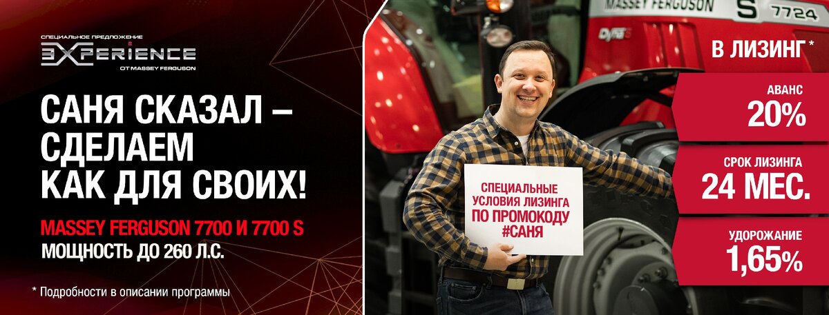 AGCO-RM подготовил лизинговые программы на несколько моделей тракторной техники. Специальные условия действуют по промокоду #САНЯ с 1 марта по 30 апреля 2021 года.