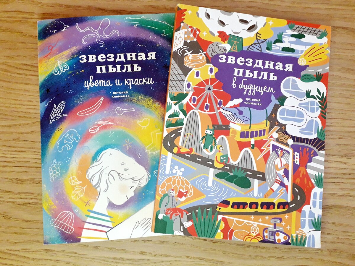 Каждые каникулы я обязательно готовлю детям сюрпризы в виде новых книг. Как награду за успехи в учёбе и как мотивацию к получению новых знаний вне школы. В этот раз я настолько довольна своими книжными покупками, что не могу удержаться и не рассказать вам о них. Удивительно, как я раньше не знала о таком формате детской литературы, это же гениально! Посмотрите, наши первые (и точно не последние) детские научные альманахи: Альманахи «Звездная пыль» — это детские сборники, в которых объединены тексты современных авторов: научных журналистов и ученых, преподавателей и экспертов, детских писателей и поэтов. Каждый сборник содержит материал в совершенно разной подаче на одну определенную тему. Например, альманах "Звездная пыль. Цвета и краски" рассказывает детям все о цвете. Представьте, что вы берете в руки книгу и каждый ее новый разворот - это сюрприз. Это может быть научный комикс об открытиях Ньютона: Или рассказы о том, как видят цвета животные: Или интервью о цвете от настоящего п
