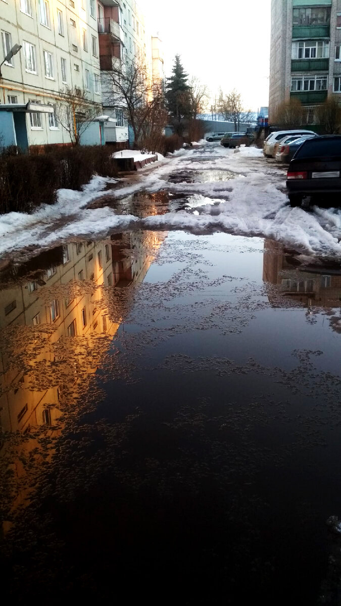Во дворах и на дорогах очень много луж, тают огромные сугробы, которые коммунальщики не убрали за зиму. Вся эта грязная масса течёт по нашим дорогам образуя большие лужи, особенно в наших дворах. Иногда лужи достигают таких размеров, что можно назвать их маленькими озёрами, они являются очень большим испытанием для автомобилей.