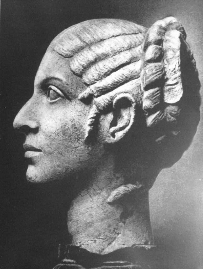 Скульптуры также не дают нам большого представления о ее внешности: есть две или три головы в классическом стиле, но также есть несколько статуй в полный рост в египетском стиле, и ее внешний вид в них совершенно другой.