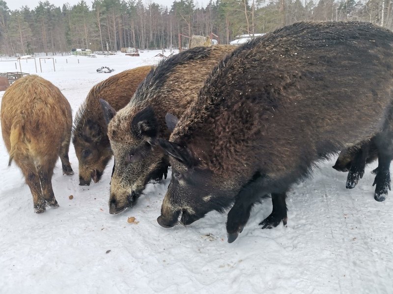 Петербуржец поделился ярким впечатлением от поездки в карельскую глубинку. В поселке Куркиеки Лахденпохского района мужчина стал свидетелем того, как кабаны целыми семьями выходят к людям в поисках пищи. Мужчина выложил на своей странице «ВКонтакте» фотографии диких зверей. На снимках кабаны с надеждой ждут угощения, а потом дружно обедают тем, что удалось выпросить.