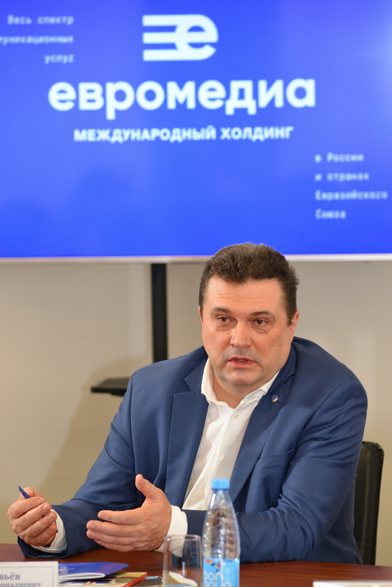 Во время посещения международного холдинга «ЕвроМедиа» председатель Союза журналистов России Владимир Соловьев пообщался с сотрудниками холдинга и ответил на их вопросы.