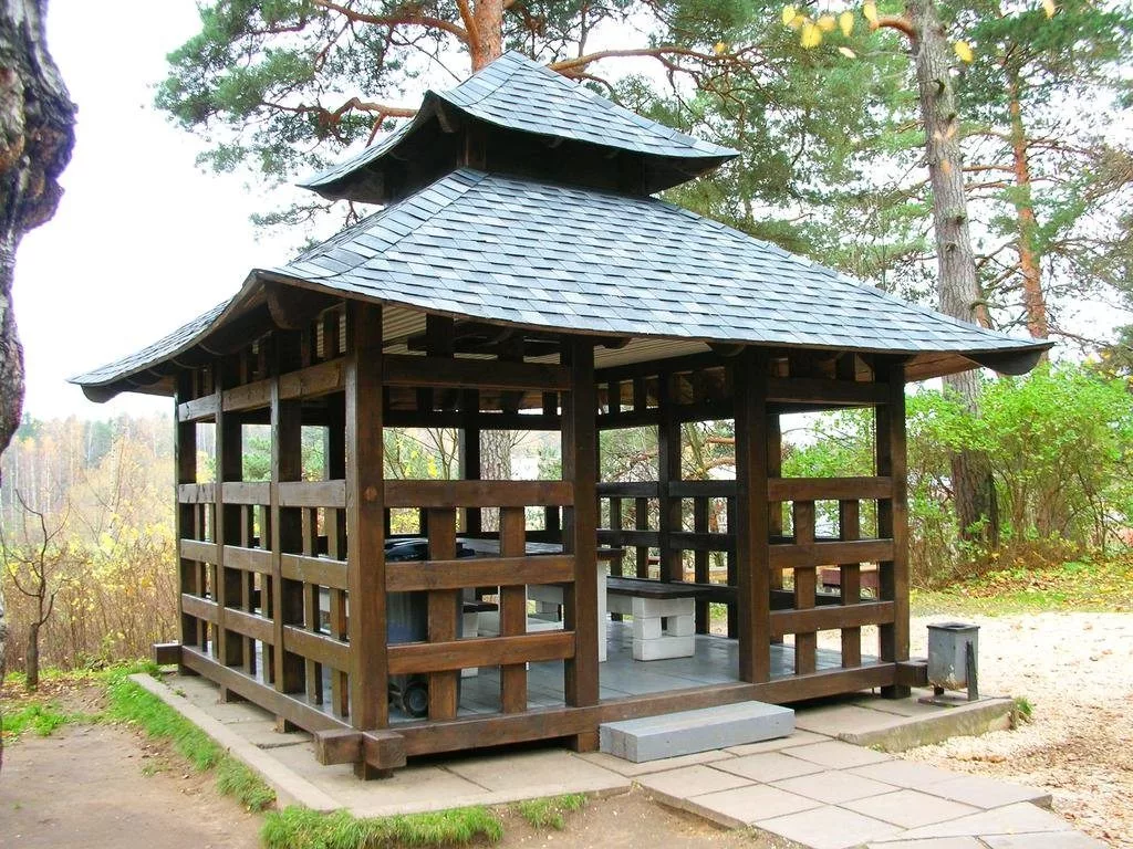 Представляю вашему вниманию проект беседки в китайском стиле со всеми размерами, разметкой фундамента, стропильной системой кровли и т.п. На участке смотрится очень оригинально и удобна в использование.