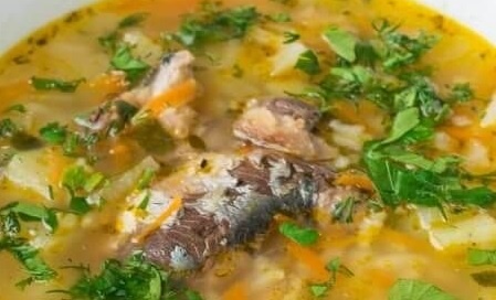 На первое приготовим суп рыбный (из консервов).