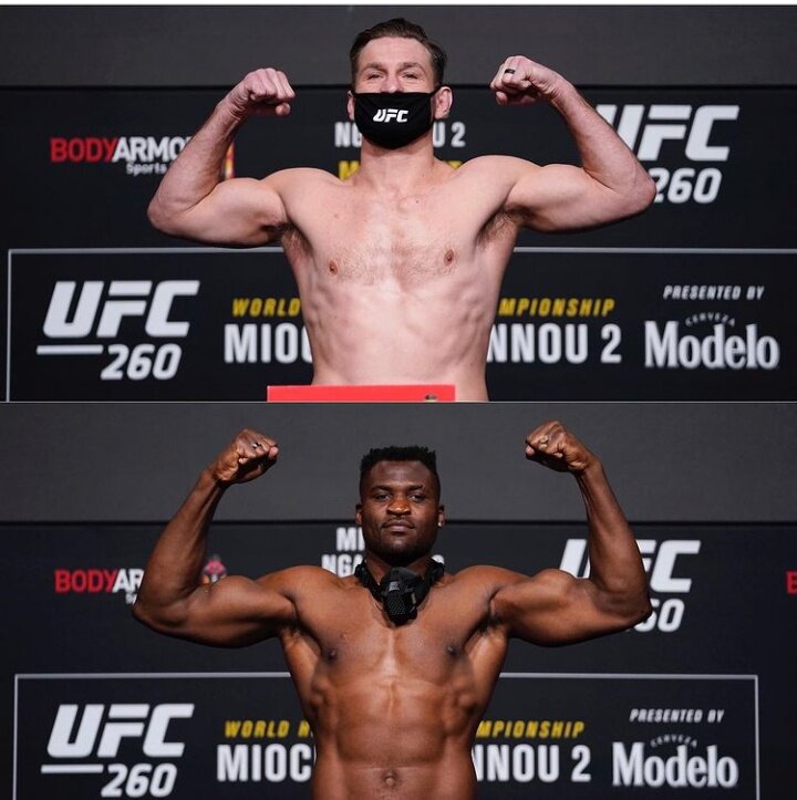 Стипе Миочич-234 фунта. Френсис Нганну-263 фунта. Напомню что бой состоится 28 марта